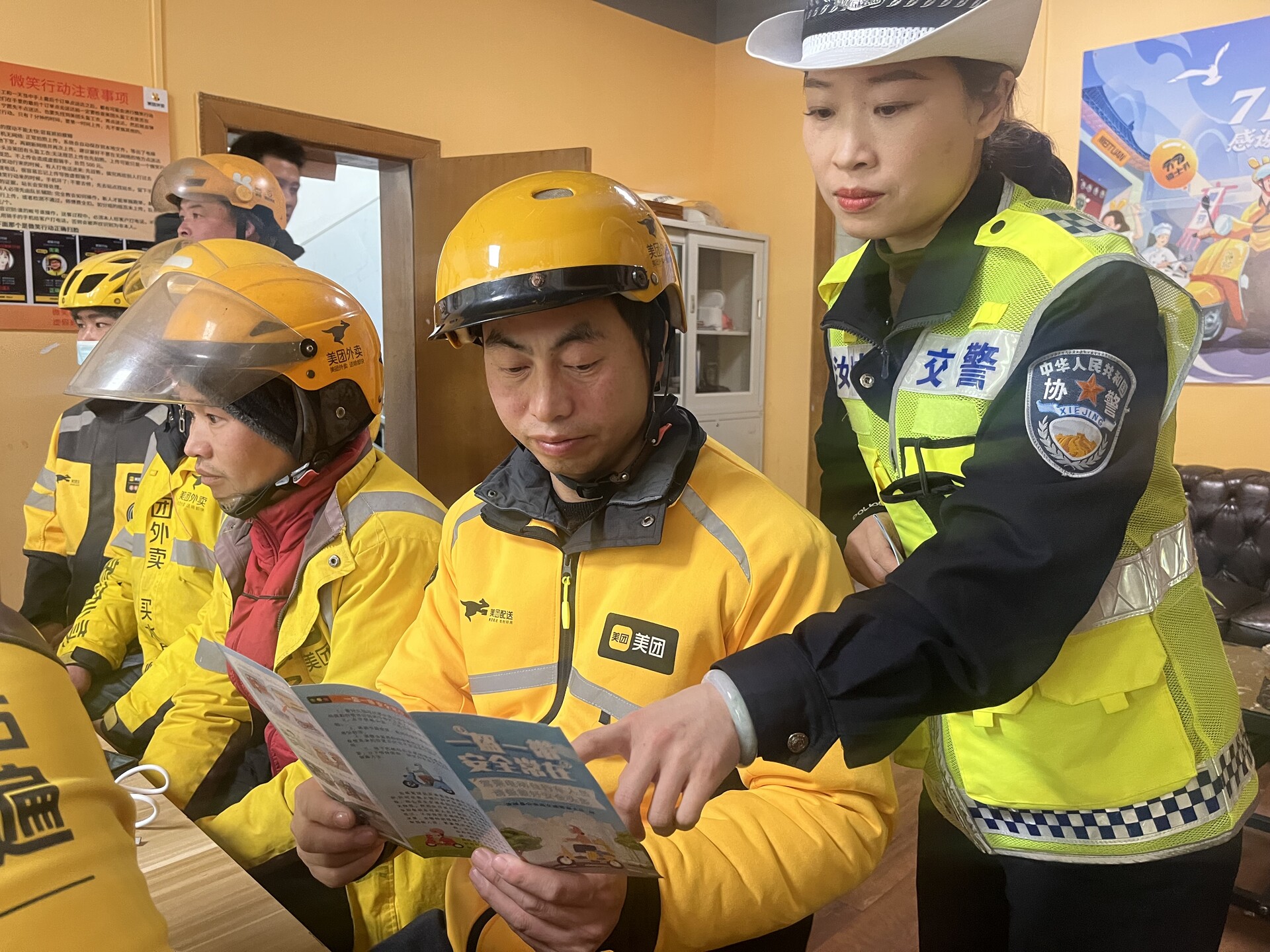 行动中,工作人员创新采用“现场执法 + 视频巡查”模式。在城区人员密集处、小区等重点场所,针对快递外卖驾驶员闯红灯、逆行、不戴安全头盔等交通违法行为,现场进行查处与教育。工作人员不仅要求驾驶员签订《交通安全承诺书》,还发放《交通安全倡议书》,反复叮嘱其遵守交规、文明出行。同时,安排专人调取视频,对上述交通违法乱象展开巡查,并将违规情况曝光,通报至相关企业,责令落实主体责任,强化交通安全培训,提升驾驶员的责任与安全意识,筑牢企业安全防线。