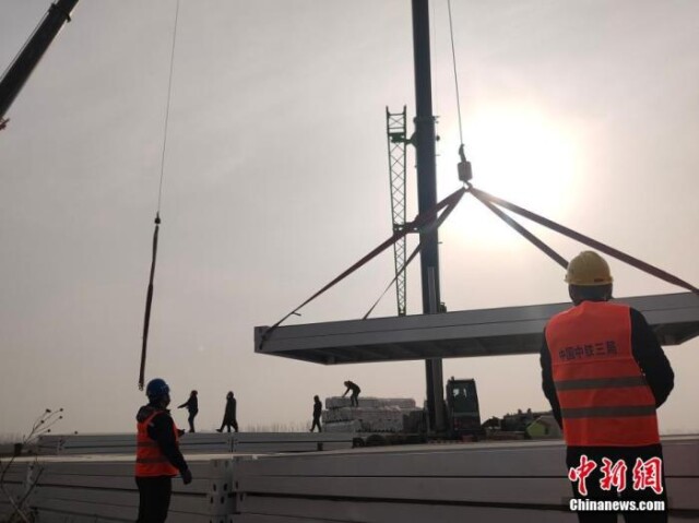 1月14日,石家庄市集中隔离点建设现场,施工人员正在加紧施工。王天译 摄