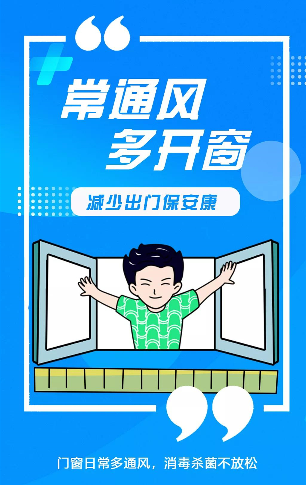 夏季天气炎热,居民家中空调常开,仍然需要开窗通风,保持室内空气流通。选择气象条件适宜的时间段,每天至少开窗通风2-3次,每次20-30分钟。空调长时间未使用,再次使用前要进行清洁消毒;使用中央空调时,要加大新风量,关闭回风。保持居家、办公及公共场所环境清洁卫生,对桌面、台面、地面等物体表面及电梯、厕所等公共设施定期清洁消毒;不乱扔垃圾。