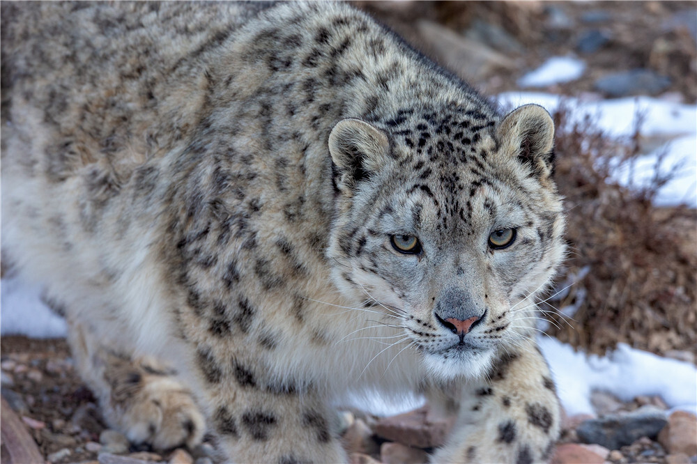 这是在祁连山国家公园体制试点区青海片区拍摄的雪豹(2018年4月14日摄)。新华社发(鲍永清 摄)