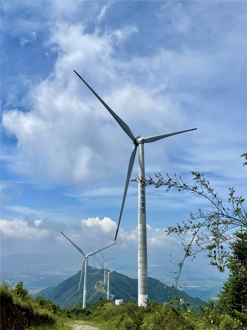 这是在湖南省汝城县拍摄的风力发电机(8月23日摄)。新华社记者 苏晓洲 摄