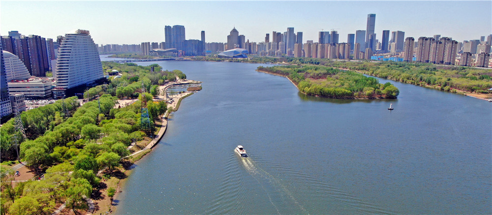 辽宁省沈阳市浑河两岸风光(无人机照片,2019年5月1日摄)。新华社记者 杨青 摄