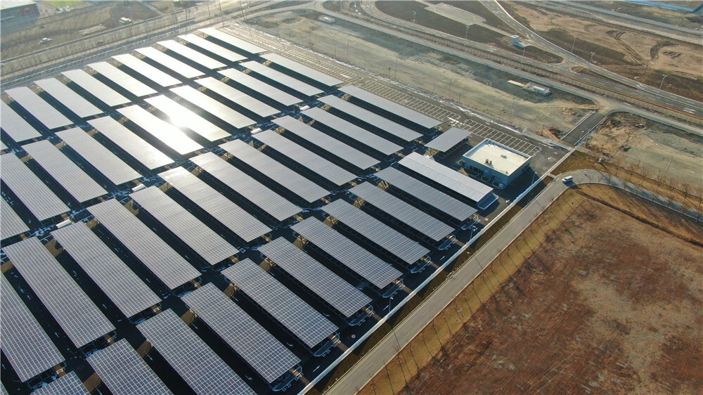 这是在辽宁省沈阳市的华晨宝马铁西新工厂拍摄的光伏发电设施(12月28日摄,无人机照片)。新华社记者 杨青 摄