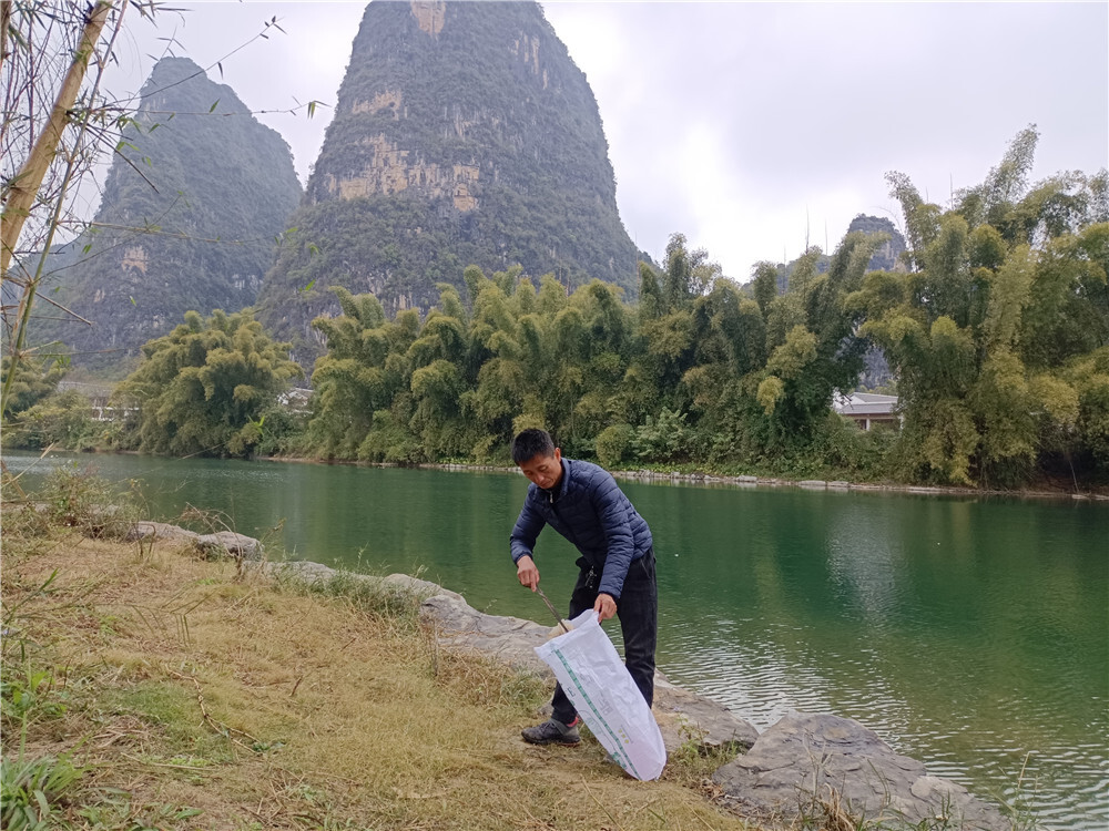 “遇龙河最终汇入漓江,保护好支流才能更好保护漓江。旅游旺季的时候,我们一天最少巡查两次。”徐文通说,2018年他成为河长,主要负责遇龙河鸡窝渡村段的垃圾处理和污水排放等巡查。