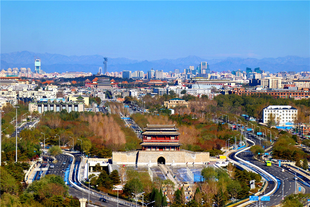 北京永定门城楼及周边景色(11月8日摄)。新华社发(牛云岗 摄)
