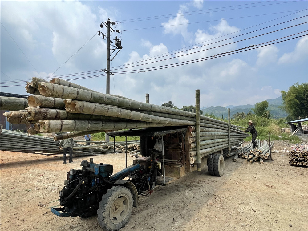 湖南省汝城县热水镇村民在搬运竹子(8月22日摄)。新华社记者 苏晓洲 摄