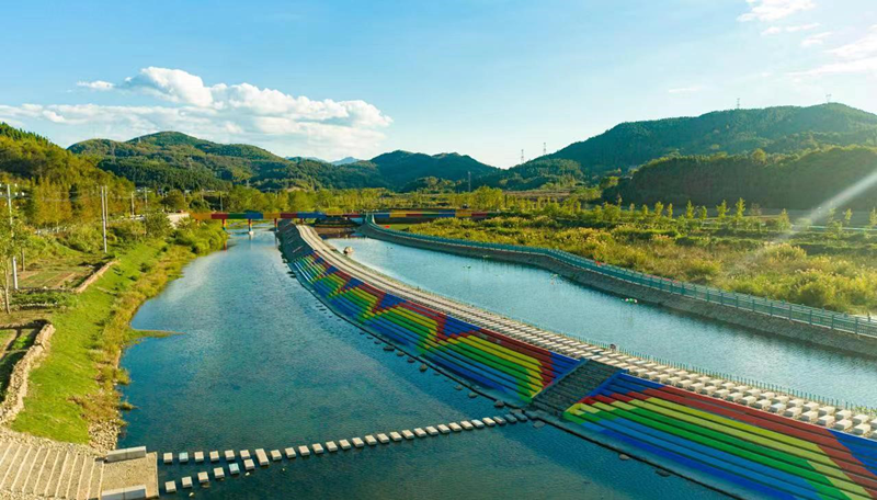 西河一些河段无护岸,一旦洪水侵袭,淹没耕地、冲毁岸坡。稳固岸坡+构筑景观,和谐村砌出一道道七色石阶,“彩虹桥”倒映西河清流中。站立桥上看风景,人与水、人文与水和谐,和谐村因水而美、因水而兴。