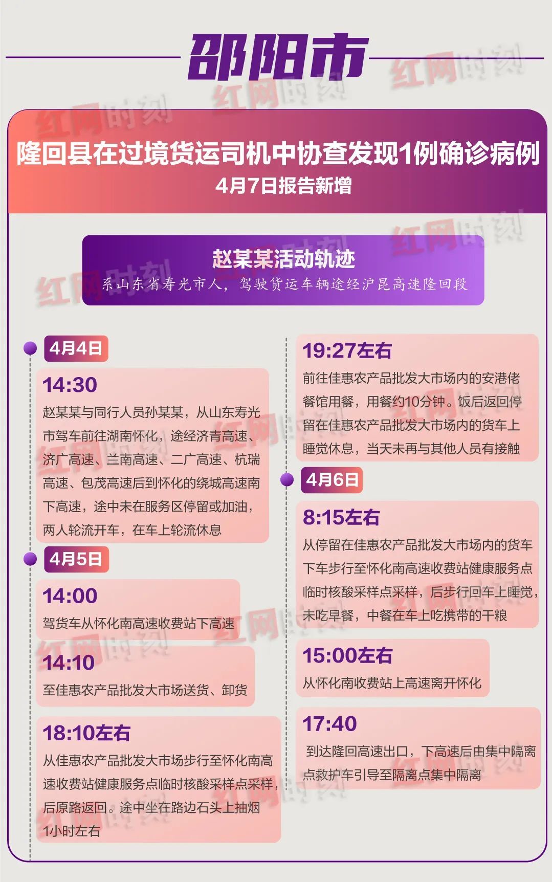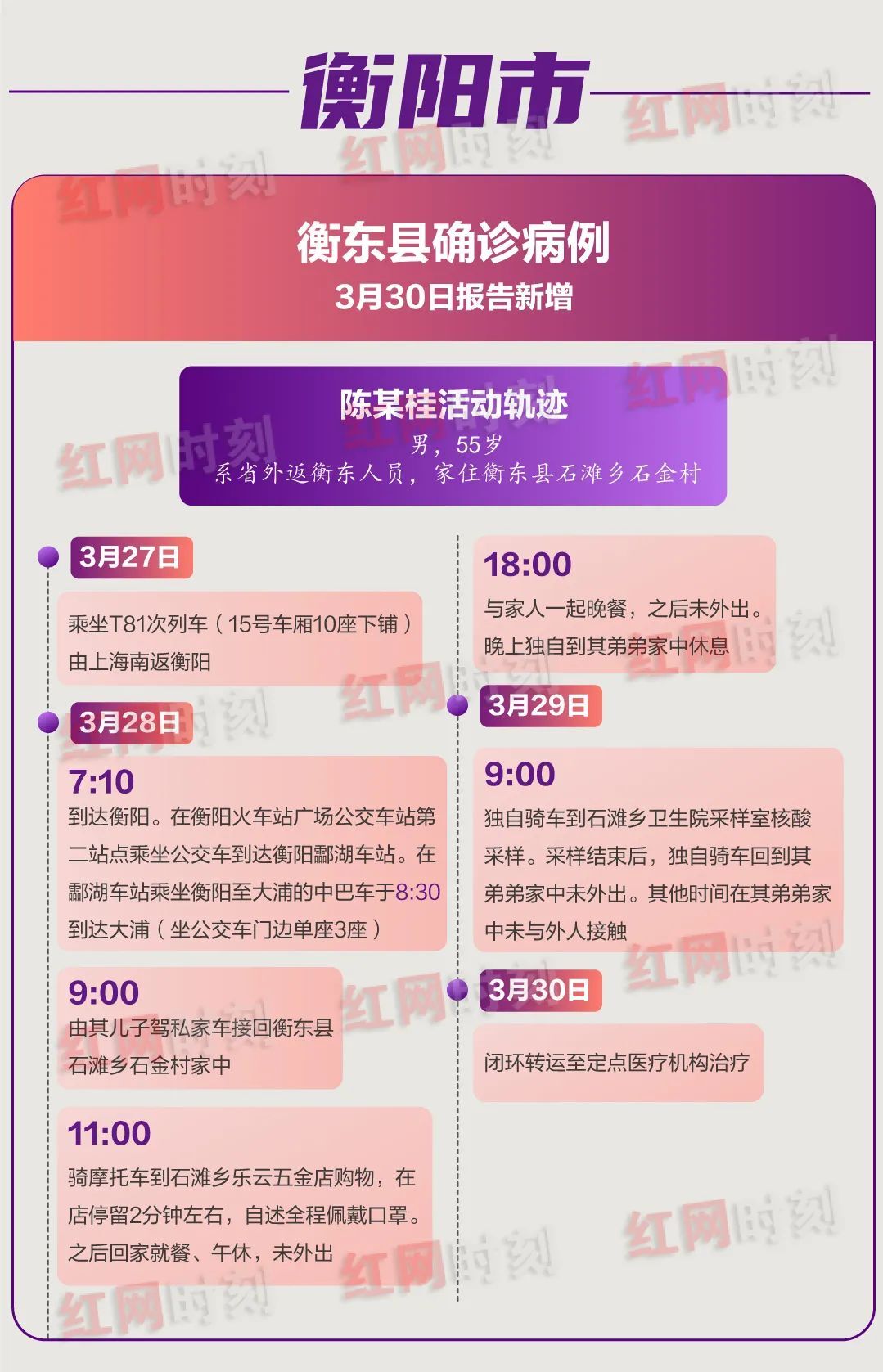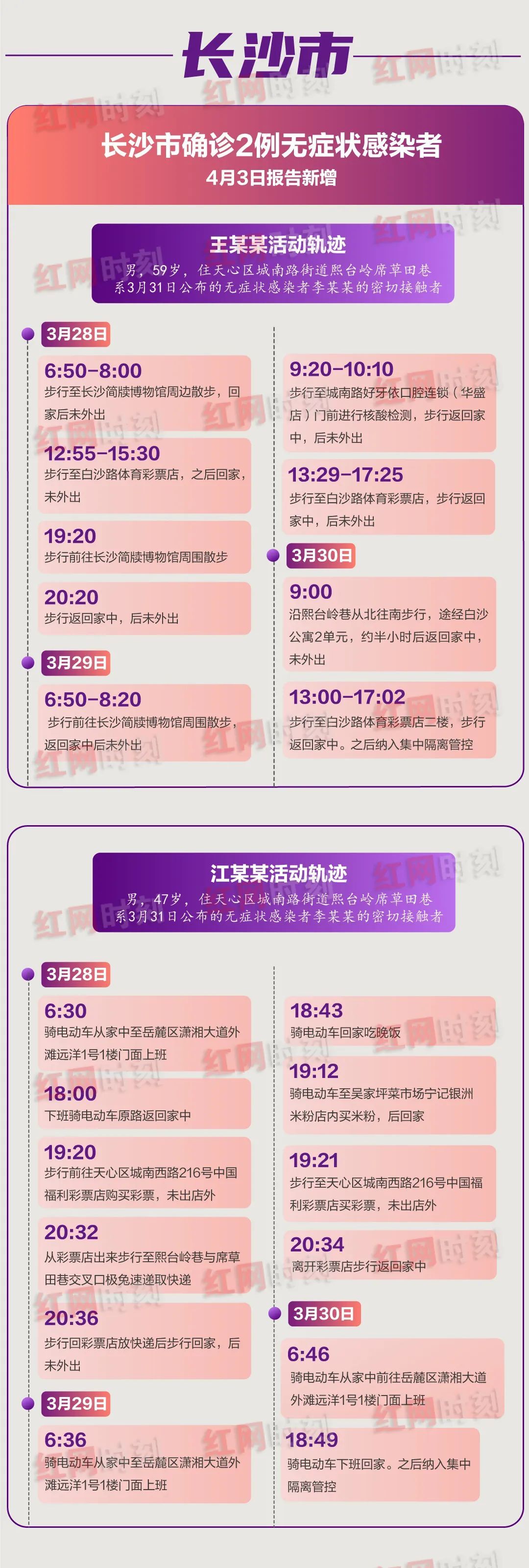 近期,湖南省11市相继报告外省入湘人员检出确诊病例,疫情输入和扩散风险持续存在,防控形势严峻。各确诊病例具体活动轨迹如下,如有去过这些地方的郴州人请速主动报备!