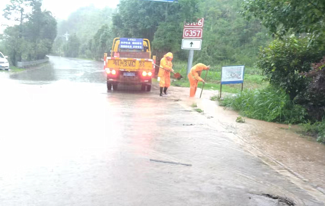 县域内国道G357线、G106线、S562线等多处路段发生损毁塌方,县交通公路部门第一时间奔赴一线,冒雨对损毁路段开展紧急抢险,清理落石泥沙及倒伏树木、疏通边沟、完善警示标牌。目前,已累计疏通水沟涵洞23处,清理倒伏树木125棵、落石泥沙1150 立方,投入人员35人次,出动机械设备45台次。