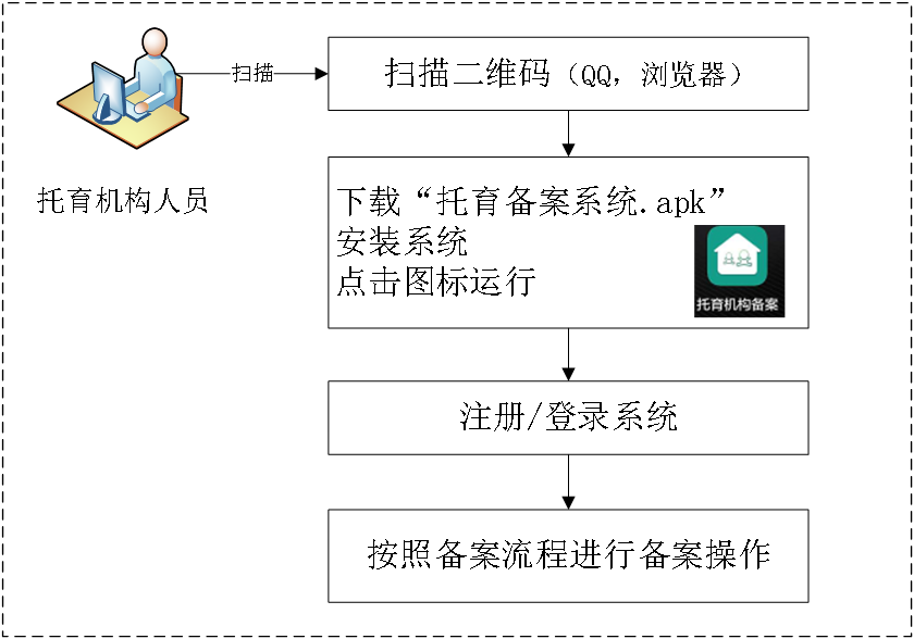 2.通过手机下载APP(二维码见下图)后登录APP进行托育机构注册并登录,在线填写机构基本信息,托育机构备案书、备案承诺书,并按照备案系统提示,提交以下材料扫描件: