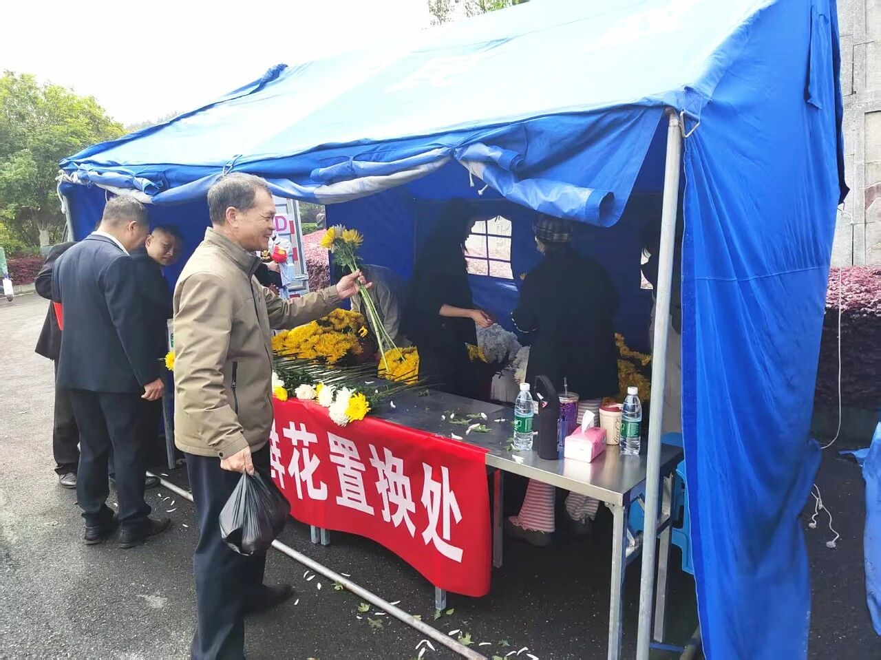 陵园以绿色低碳、文明安全为核心,推广文明祭扫理念,设鲜花置换点,免费提供一万余枝菊花,引导群众摒弃陈规陋习。同时,强化宣传警示,悬挂30条相关横幅,增设10块雨天路滑警示牌。